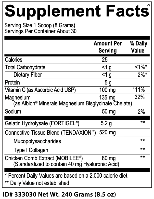 - Supports the Body’s Self-Repair Process for Cartilage, Tendons, Ligaments, Fascia and Bone
