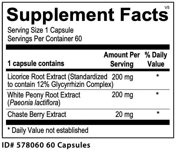 Widely used together in clinical trials to help maintain normal DHEA, prolactin and prostaglandin levels, licorice and peony help support healthy progesterone secretion and estrogen balance. Studies have shown this combination of botanicals supports normal DHEA-S levels, decrease prostaglandin production and normalize prolactin levels. Licorice root extract is also important in supporting adrenal health. Glycyrrhizin and its metabolites are known to slow down enzymes that convert cortisol to its inactive form cortisone. The similarity in structure of glycyrrhetic acid to that of cortisol accounts in part for the glucocorticoid activity of glycyrrhizic acid. Licorice has also been found to reduce serum testosterone by blocking 17-hydroxysteroid dehydrogenase and 17-20 lyase, making it useful in protocols for balancing testosterone levels.